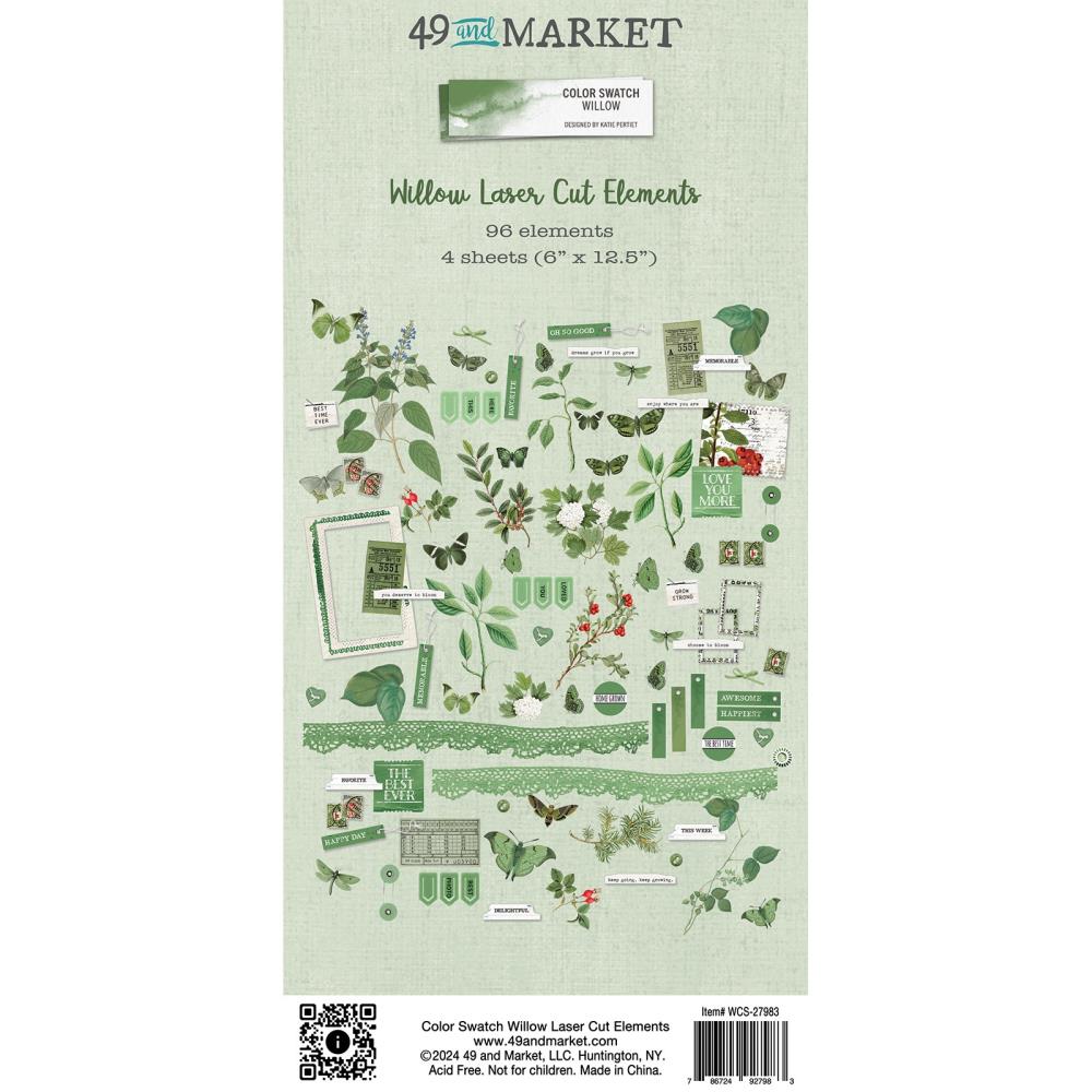 There are 96 precision laser cut elements that include butterflies, florals, photo wraps, bows, buttons, tabs and more! The detailed intricacy of laser cut pieces bring projects to another level with ease. This package contains elements on four sheets of 6x12.5" heavyweight cardstock.