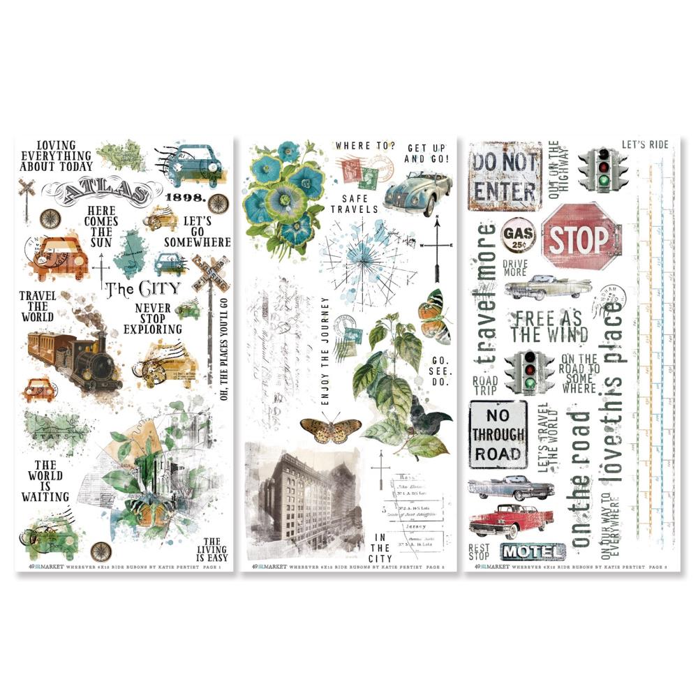 A huge combination of rub-on transfers which easily rub on in any part of your project. The vintage designs, travel icons, quotes and distressed elements are a perfect addition to any project. Contains 3 sheets of 6x12 inch assorted transfers.