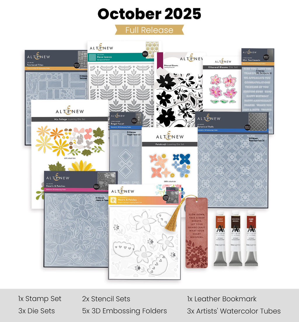 As the air turns crisp and golden leaves drift past windows, October calls us inward—toward warmth, reflection, and creativity. This release captures that invitation through innovative florals, richly layered textures, expressive color, and thoughtful tools—all designed to turn everyday crafting into a soulful experience.