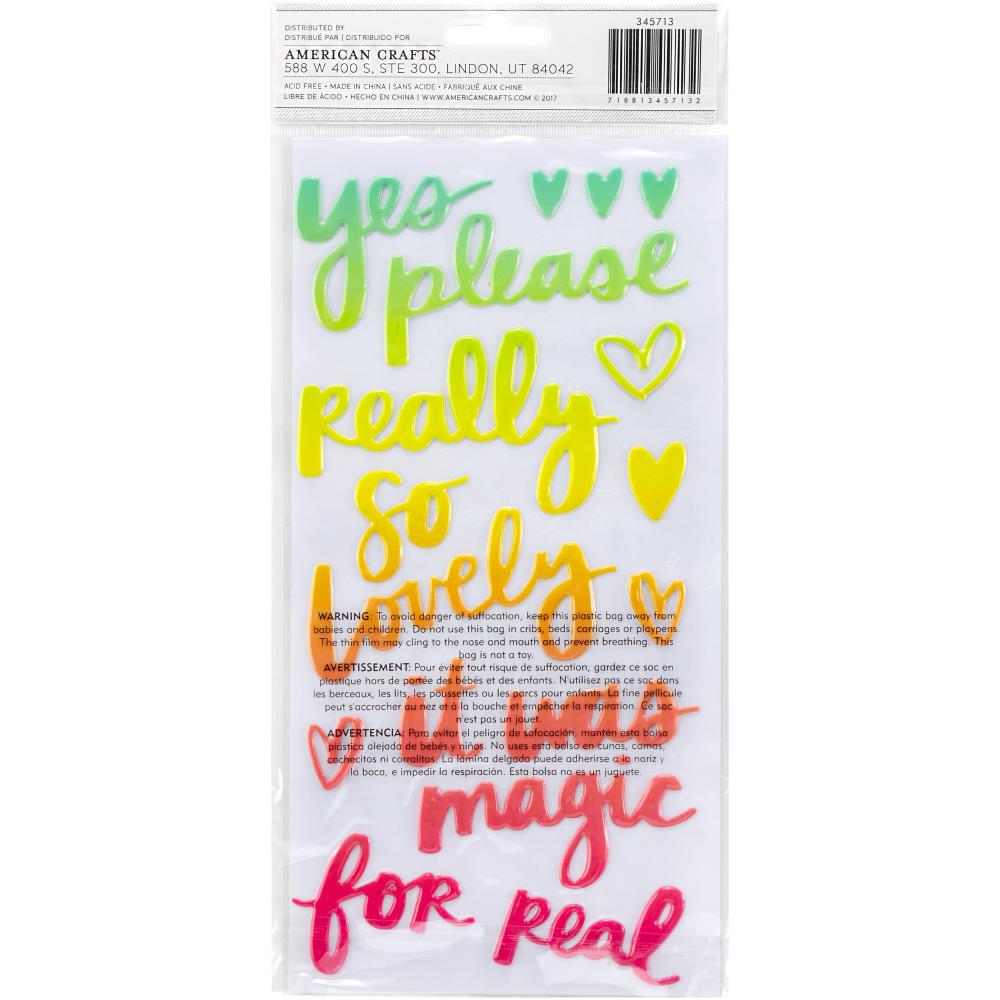 Easily add dimension with puffy stickers. Colorful pieces add a trendy, fun look! This package contains two 3.5x6.75 inch sheets of a total of 35 puffy stickers.