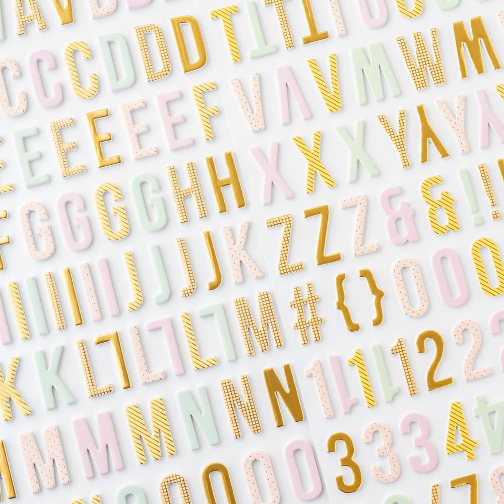 Create custom titles, phrases, and words for your projects with alphabet Thickers! They're great for scrapbook pages, cards, mixed media projects, journals, planners and so much more. This package includes puffy alphabet Thickers in a variety of letters, numbers, and punctuation marks.