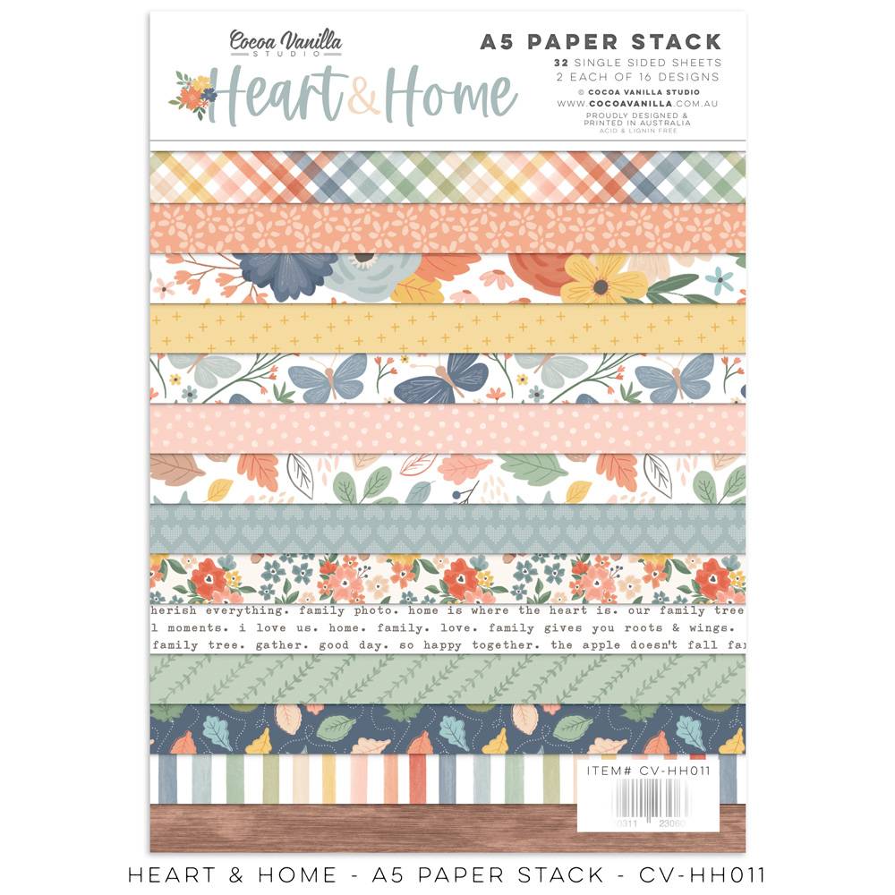 Each paper stack includes 32 x single-sided A5 designer papers (2 each of 16 designs) – Printed on 210gsm cover weight cardstock. Each stack of loose papers is packaged in a clear bag.