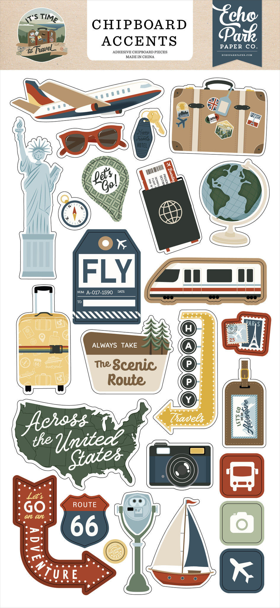 ***Pre-Order*** Echo Park - It's Time To Travel - Chipboard Accents