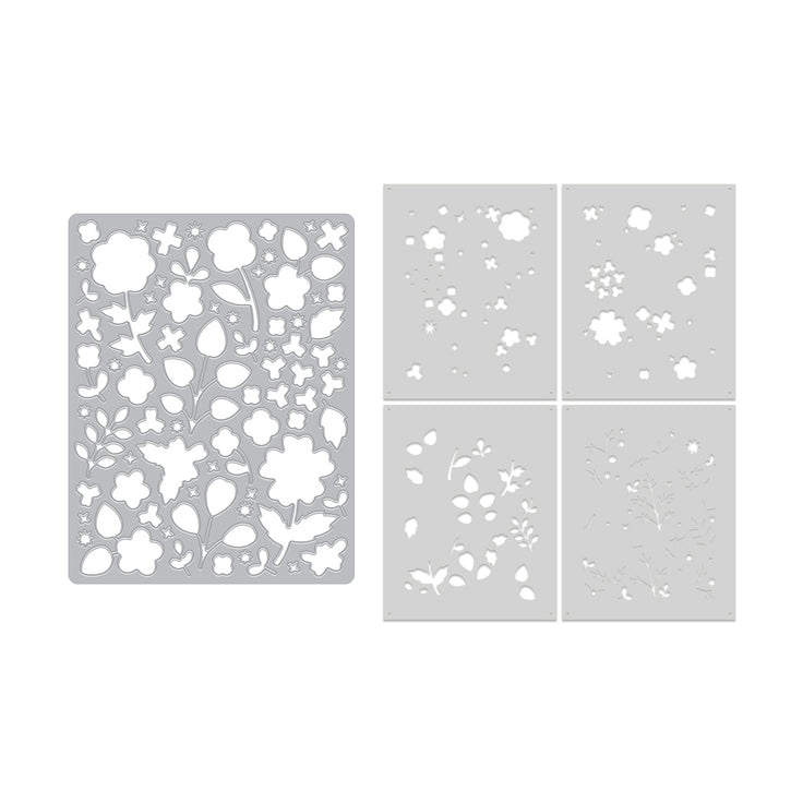 The Meadow Blooms Bundle includes the Meadow Blooms Cover Plate Die and the coordinating Color Layering Meadow Blooms Stencil, sold together for easy creativity. Use the cover plate to cut a bold floral background, then layer on color with the stencils for beautifully blended blooms. This bundle makes it simple to create polished, colorful cards with depth and detail in just a few steps.