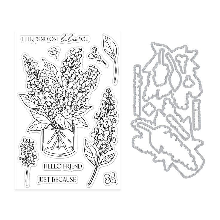 Create elegant floral cards with the No One Lilac You Stamp & Cut set. This beautiful set features a detailed lilac bouquet in a glass jar, individual stems and leaves, and a few simple sentiments—perfect for thoughtful, nature-inspired designs.