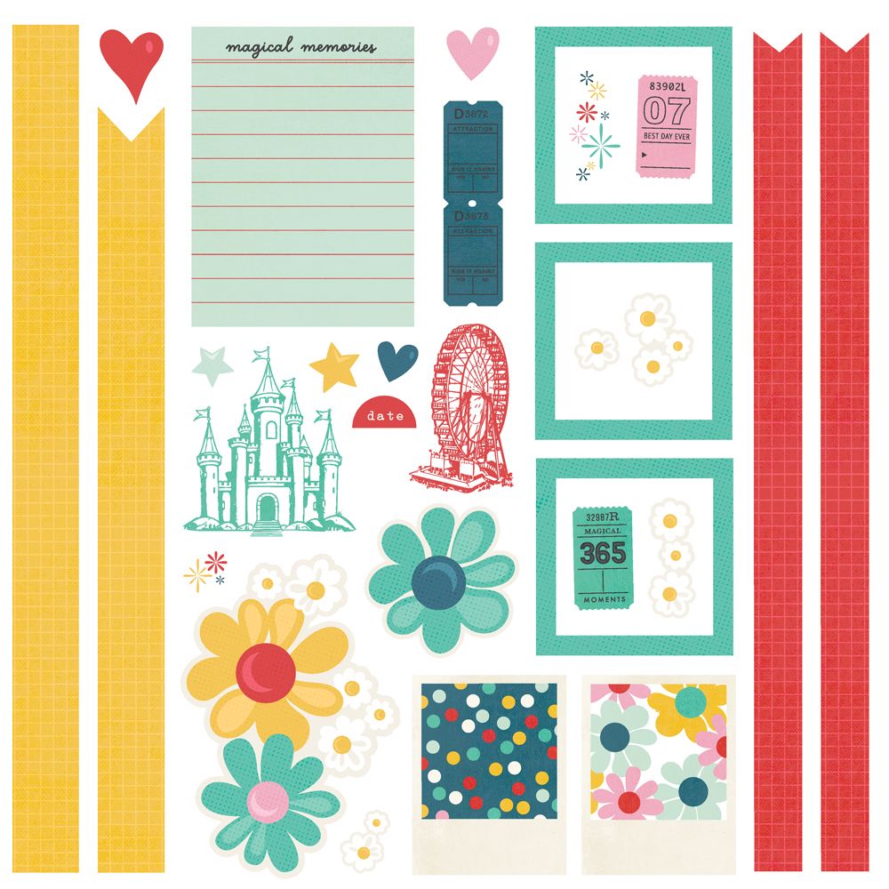 (37) Chipboard Pieces, (59) Die-Cut Bits & Pieces, (4) 12x12 Cardstock Base Sheets and Complete Step-By-Step Instructions.