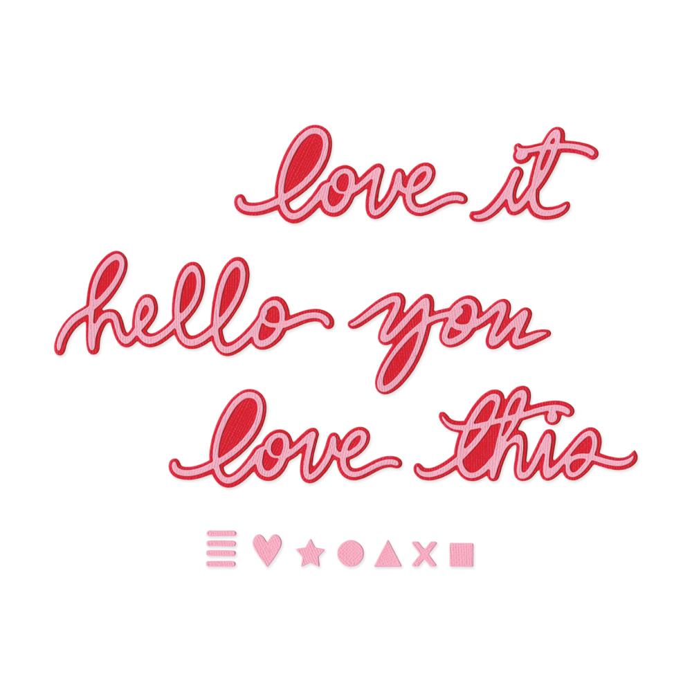 Use the Thinlits Die Set 17PK Vicki Script #1 by Vicki Boutin for projects! This lively set of 17 dies features an assortment of phrases that will brighten any project. These cheerful phrases including "love it" and "love this are perfect for spreading good vibes whether youre making cards, scrapbooking, or adding a special message to a gift. Let your creativity shine and add a touch of joy to every craft with this must-have die set!