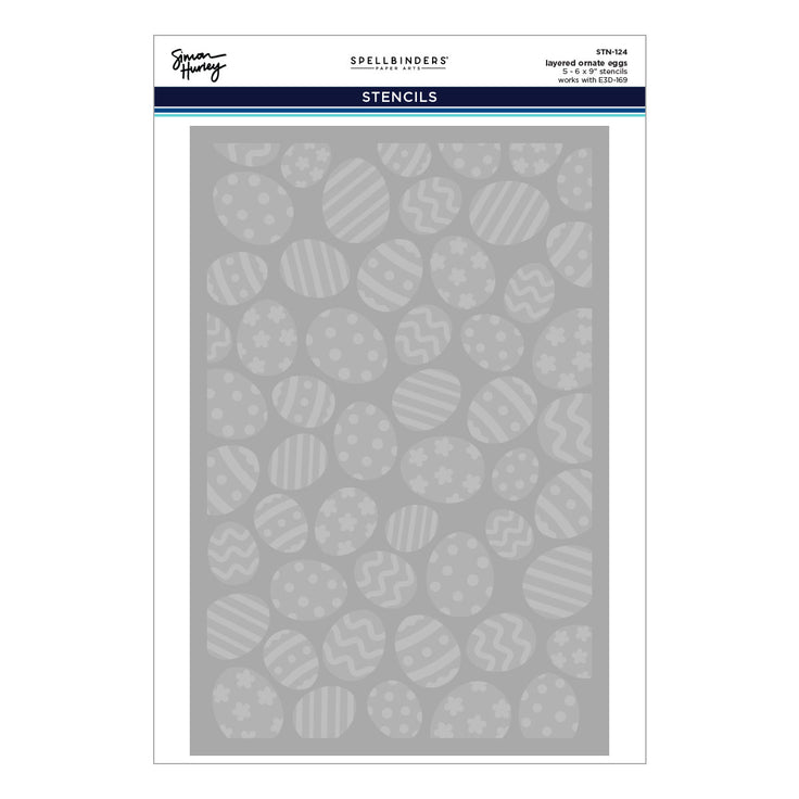 Layered Ornate Eggs Stencil is part of the Happy Spring Collection by Simon Hurley and made of durable mylar stencil material. The five stencil sheets give a detailed decorated egg background for a one-layer look or use mediums like Simon’s paste for dimension. For an embossed texture, use E3D-169 Ornate Eggs 3D Embossing Folder or purchase as a bundle with the dies in the collection, BD-1050 Happy Spring I Want It All Bundle (both sold separately).