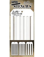 This set of 3 layering stencils, Shifter Multi Stripes, is designed by Tim Holtz for Stampers Anonymous. These stencils are perfect for layering inks, paints, stains, pastes, and other crafting mediums (sold separately) onto your projects. These stencils are tag-shaped with a hole at the top and measure 4 1/8" x 8 1/2". These stencils are reusable and will clean up easily whichever crafting medium you choose to use.
