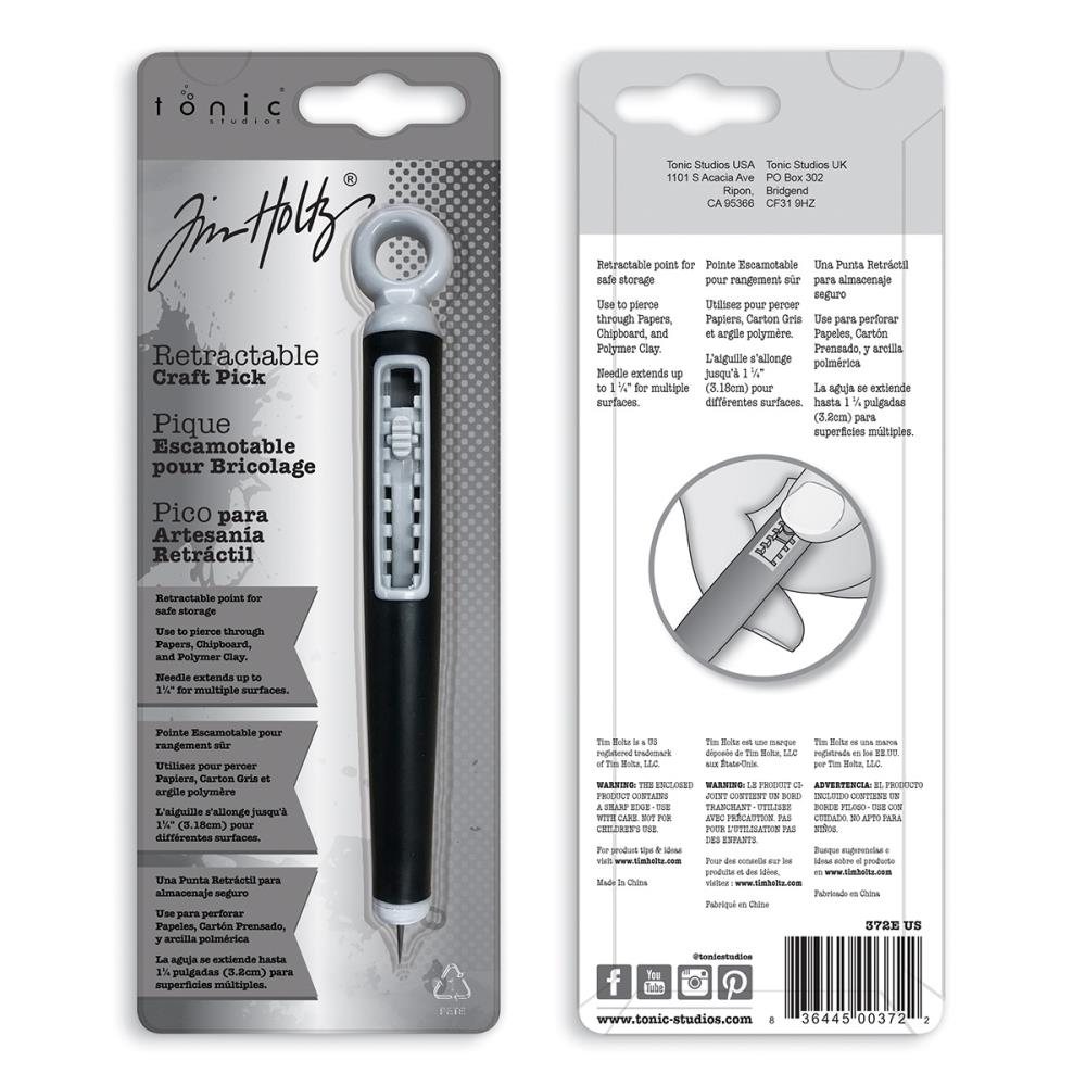 Perfect for crafting, rubberstamping, and scrapbooking. Retractable point for safe storage. Color: black and grey. Use to pierce through papers, chipboard, and polymer clay. Needle extends up to 1.25 inches for multiple surfaces.