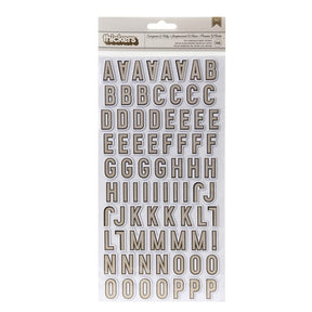 Stickers add the perfect finishing touch to your paper projects. Stickers can be a fun embellishment, a whimsical accent or add elegant polish to scrapbook pages, greeting cards, mixed media and more. This package contains Vicki Boutin Evergreen & Holly Thickers Stickers - Alphabet with Gold Foil Accents, 156 pieces.